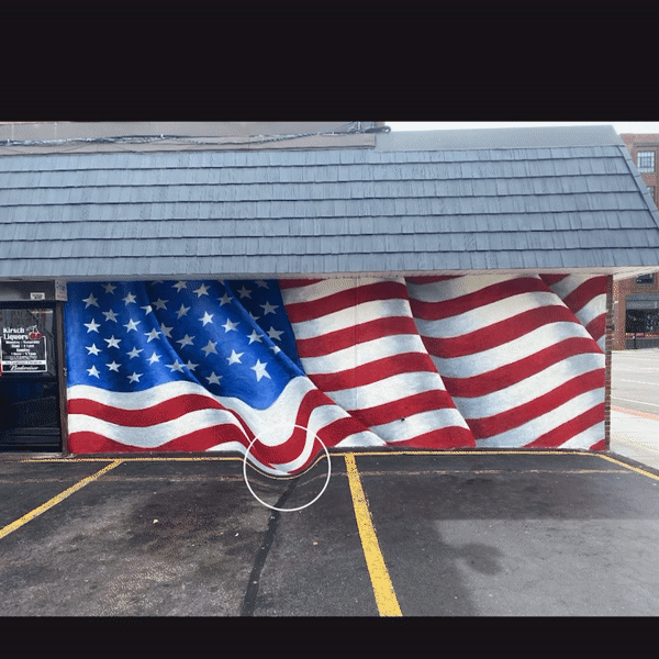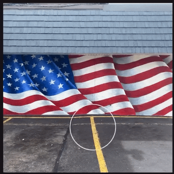 An image of the original Ameircan Flag mural— I grew up walking past this wall. The simple colors, shapes, and composition became engrained in my mind as a symbol of home. Not so much as an American flag, but as a visual icon of the intersection and location itself. The wall was destroyed in an accident.