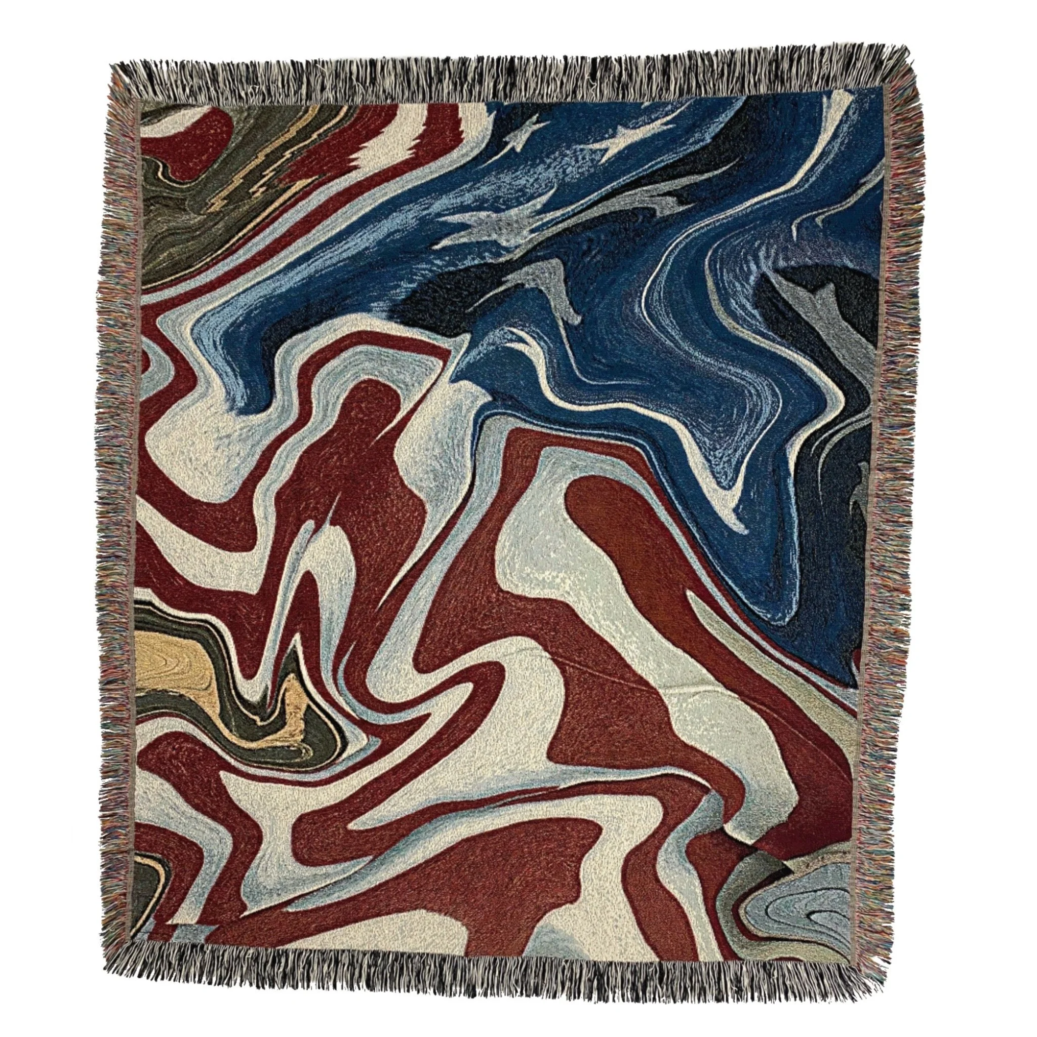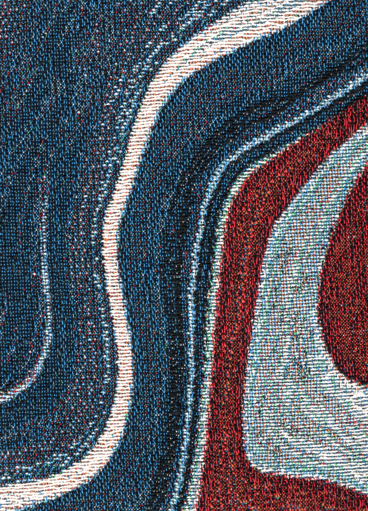 After reading “What is the fourth of July to a Puerto Rican?” an online essay inspired by Fredrick Douglass’ “What to the Slave is the Fourth of July?” I sought to make something that altered my mural, to make it a part of something beyond its existence on the wall and acknowledge the very real feelings towards American Flags and their use in the polarization of the United States “culture”. Julying to yourself, the first iteration, stemmed from a cathartic act of “destruction” that turns a picture of the mural into its own two-dimensional abstraction. There is an emphasis on the surrounding concrete elements, a reminder that it is more than just a flag, but to many a symbol of home and a part of a much larger landscape. Mi Orgullo, the second rework, utilizes the same digital process to shape the image into a Puerto Rican flag, directly referencing this duality and creating an image closer to my heart and soul. Both images, printed via jacquard-loom, are not just flags but objects of comfort and protection.